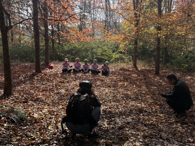 红枫林内,游客络绎不绝,不少家庭结伴而行,在枫叶下拍照留念。一位从溧水专程赶来的小朋友说,他们是通过抖音平台了解到这片枫林,“爸爸准备了齐全的拍照工具,这里的枫叶非常好看”。
