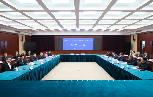 4月24日,宣州区党政代表团来淳考察,两地签订了跨界一体化发展框架合作协议,共商推动长三角一体化发展、深化两地合作重点事项。宣州区领导汪侃、俞志刚、孙国梁、鲍莎莎、许新胜、汪海洋,高淳区领导吴勇强、刘伟、黄亦武、宋卫星、贾晨参加。